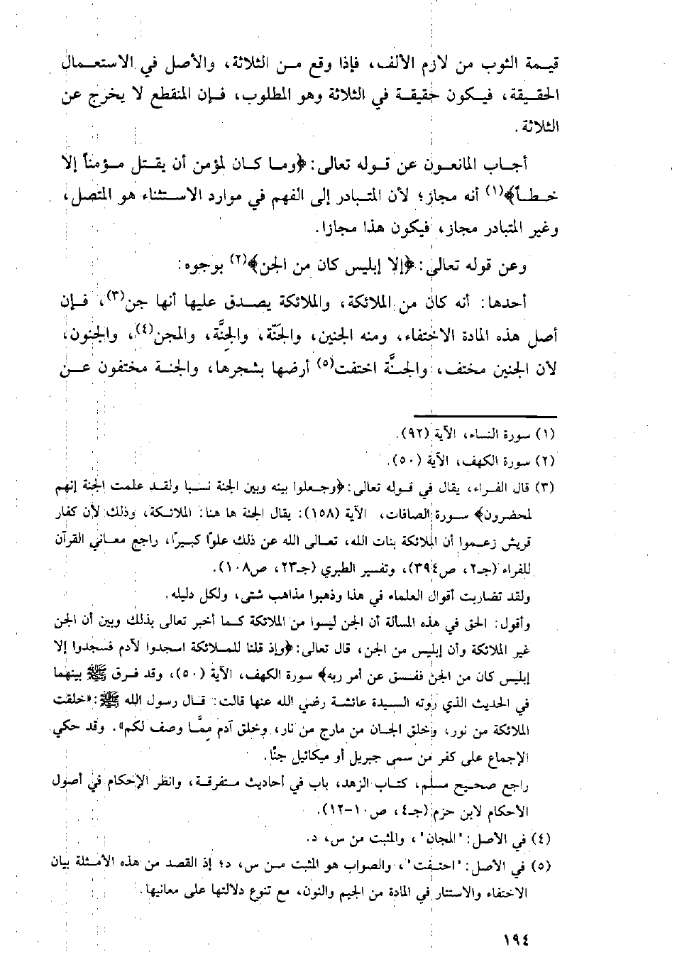 وعن قوله تعالى: {إلا إبليس كان من الجن} بوجوه: