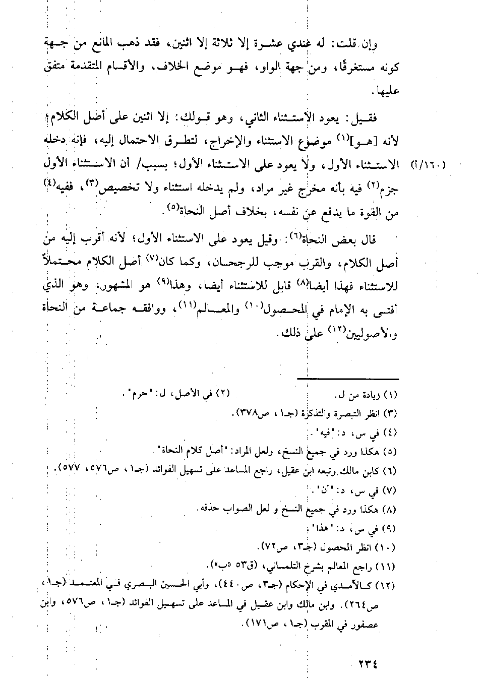 قال بعض النحاة: وقيل يعود على الاستثناء؛ لأنه أقر إليه من أصل الكلام، والقرب موجب للرجحان، وكما كان أصل الكلام محتملًا للاستثناء فهذا أيضًا قابل للاستثناء أيضًا، وهذا هو المشهور، وهو الذي أفتى به الإمام في المحصول والمعالم، ووافقه جماعة من النحاة والأصوليين على ذلك.