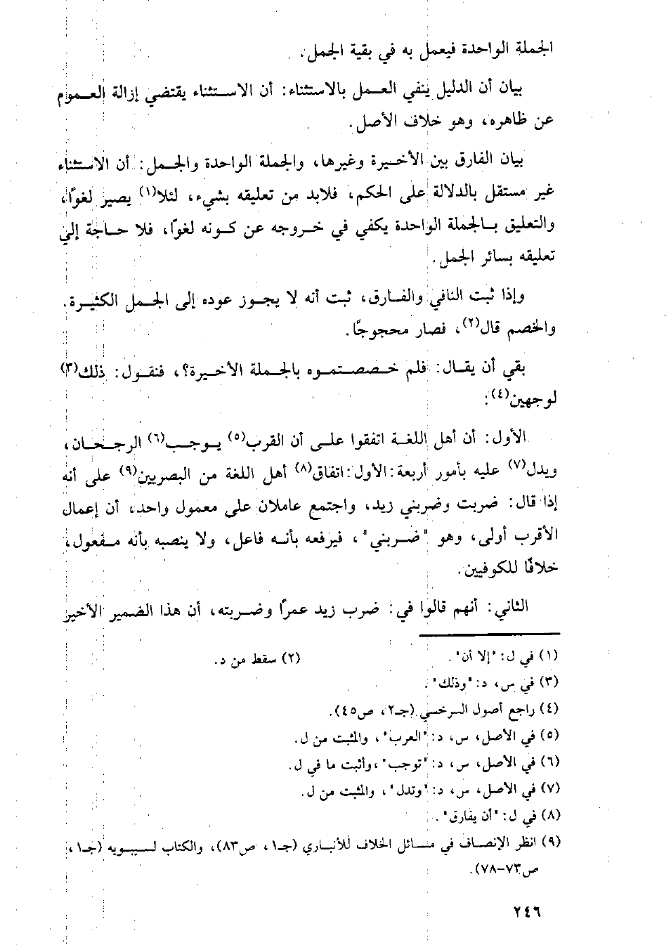 الأول: أن أهل اللغة اتفقوا على أن القرب يوجب الرجحان، ويدل عليه بأمور أربعة: الأول: اتفاق أهل اللغة من البصريين على أنه إذا قال: ضربت وضربني زيد، واجتمع عاملان على معمول واحد، أن إعمال الأقرب أولى، وهو "ضربني"، فيرفعه بأنه فاعل، ولا ينصبه بأنه مفعول، خلافًا للكوفيين.