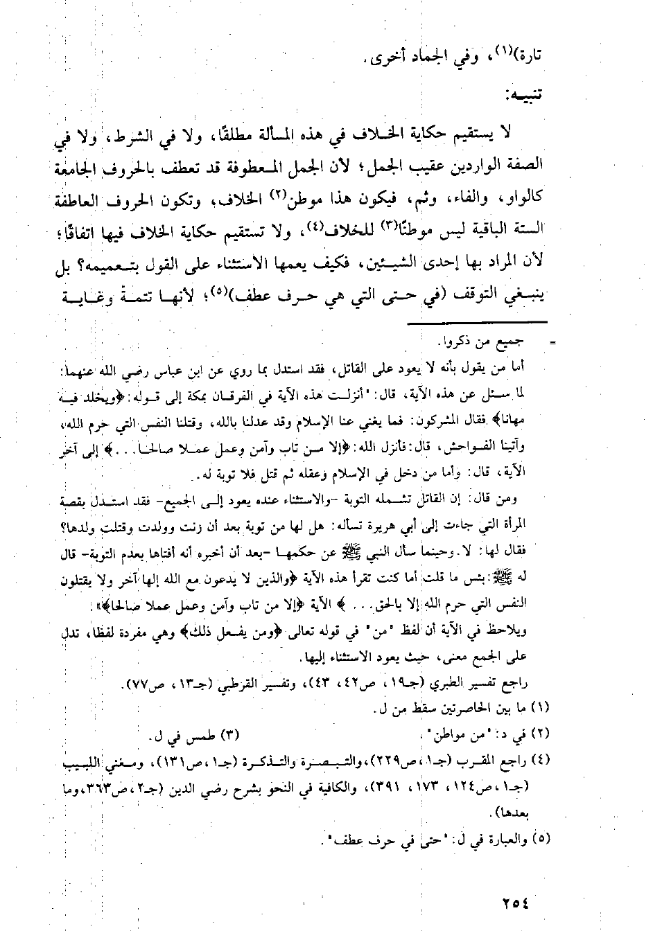 لا يستقيم حكاية الخلاف في هذه المسألة مطلقًا, ولا في الشرط, ولا في الصفة الواردين عقيب الجمل؛ لأن الجمل المعطوفة قد تعطف بالحروف الجامعة كالواو, والفاء, وثم, فيكون هذا موطن الخلاف, وتكون الحروف العاطفة الستة الباقية ليس موطنًا للخلاف, ولا تستقيم حكاية الخلاف فيها اتفاقا؛ لأن المراد بها إحدى الشيئين, فكيف يعمها الاستثناء على القول بتعميمه؟ بل ينبغي التوقف (في حتى التي هي حرف عطف)؛ لأنها تتمة وغاية