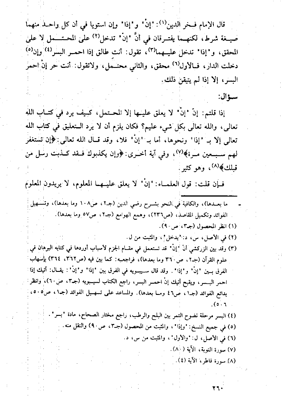 إذا قلتم: إن (إن) لا يعلق عليها إلا المحتمل, كيف يرد في كتاب الله تعالى, والله تعالى بكل شيء عليم؟ فكان يلزم أن لا يرد التعليق في كتاب الله تعالى إلا بـ (إذا) ونحوها, أما بـ (إن) فلا, وقد قال الله تعالى: {إن تستغفر لهم سبعين مرة} , وفي آية أخرى: {وإن يكذبوك فقد كذبت رسل من قبلك} , وهو كثير.