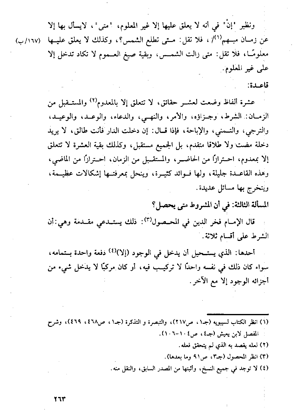 قال الإمام فخر الدين في المحصول: ذلك يستدعي مقدمة وهي: أن الشرط على أقسام ثلاثة.