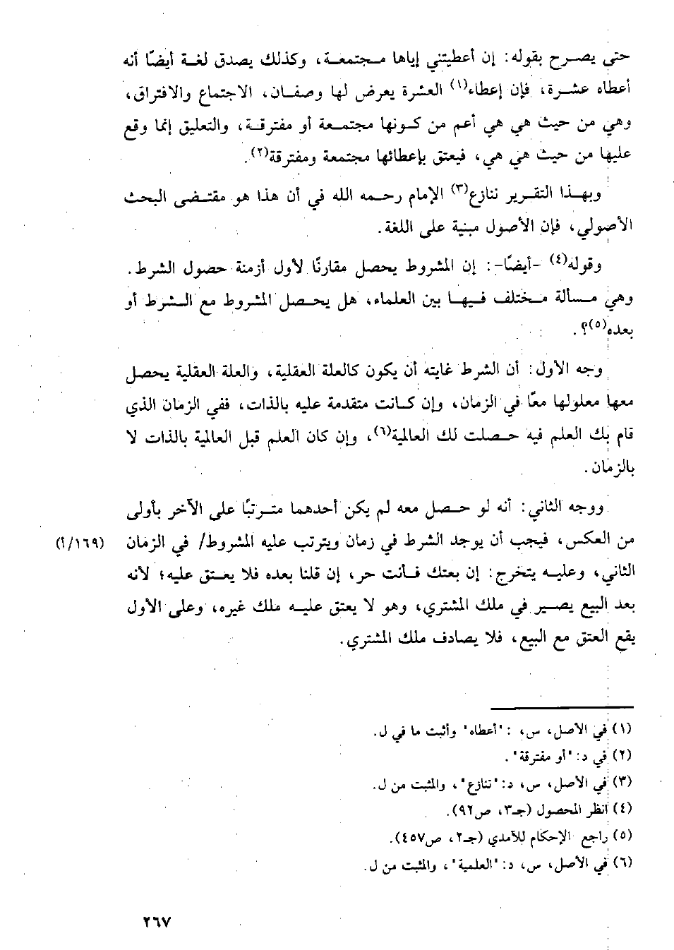 وجه الأول: أن الشرط غايته أن يكون كالعلة العقلية, والعلة العقلية يحصل معها معلولها معًا في الزمان, وإن كانت متقدمة عليه بالذات, ففي الزمان الذي قام بك العلم فيه حصلت لك العالمية, وإن كان العلم قبل العلمية بالذات لا بالزمان.