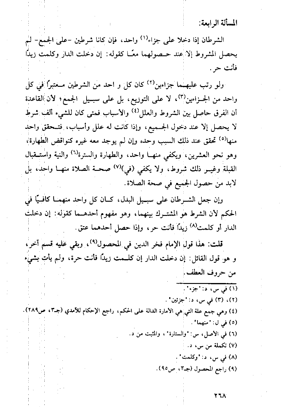 قلت: هذا قول الإمام فخر الدين في المحصول, وبقي عليه قسم آخر, وهو قول القائل: إن دخلت الدار إن كلمت زيدًا فأنت حرة, ولم يأت بشيء من حروف العطف.