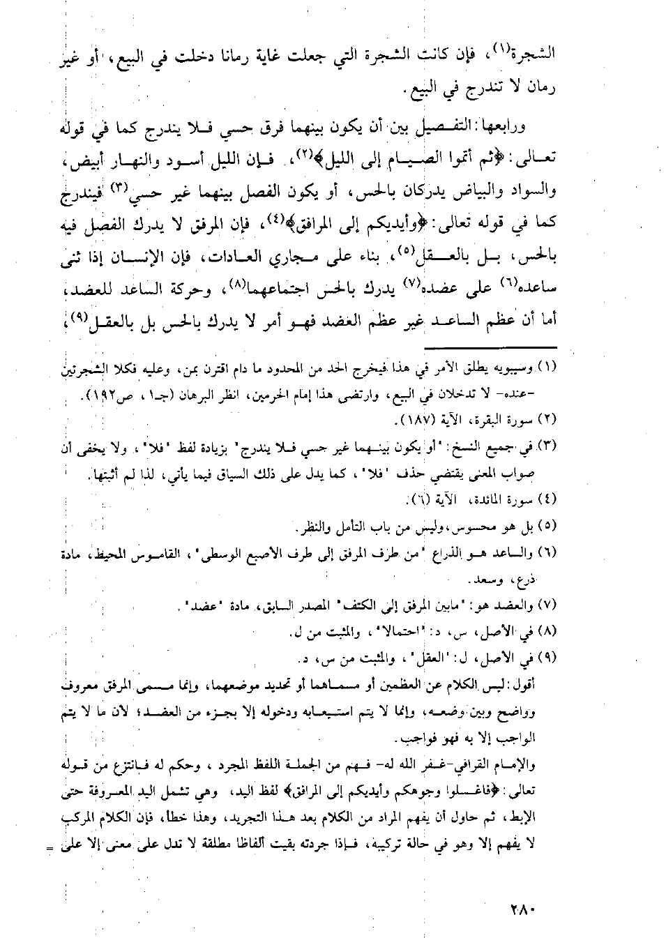 ورابعها: التفصيل بين أن يكون بينهما فرق حسي فلا يندرج كما في قوله تعالى: {ثم أتموا الصيام إلى الليل}، فإن الليل أسود والنهار أبيض، والسواد والبياض يدركان بالحس، أو يكون الفصل بينهما غير حسي فيندرج كما في قوله تعالى: {وأيديكم إلى المرافق}، فإن المرفق لا يدك الفصل فيه بالحس، بل بالعقل، بناء على مجاري العادات، فإن الإنسان إذا ثنى ساعده على عضده يدرك بالحل اجتماعهما، وحركة الساعد للعضد، أما أن عظم الساعد غير عظم العضد فهو أمر لا يدرك بالحس بل بالعقل،