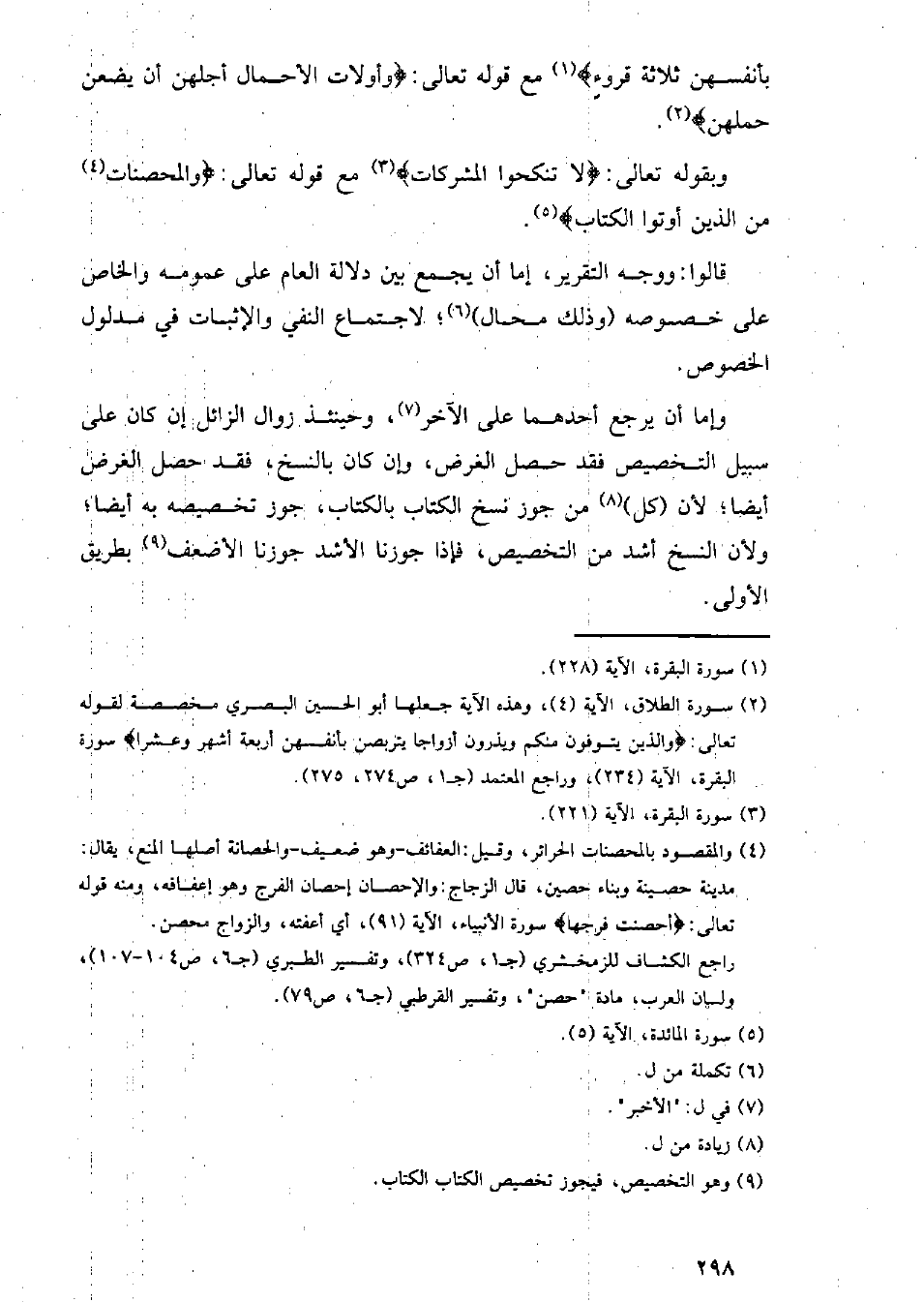 وإما أن يرجع أحدهما على الآخر، وحينئذ زوال الزائل إن كان على سبيل التخصيص فقد حصل الغرض، وإن كان بالنسخ، فقد حصل الغرض أيضا؛ لأن (كل) من جوز نخ الكتاب بالكتاب، جوز تخصيصه به أيضا؛ ولأن النسخ أشد من التخصيص، فإذا جوزنا الأشد جوزنا الأضعف بطريق الأولى.