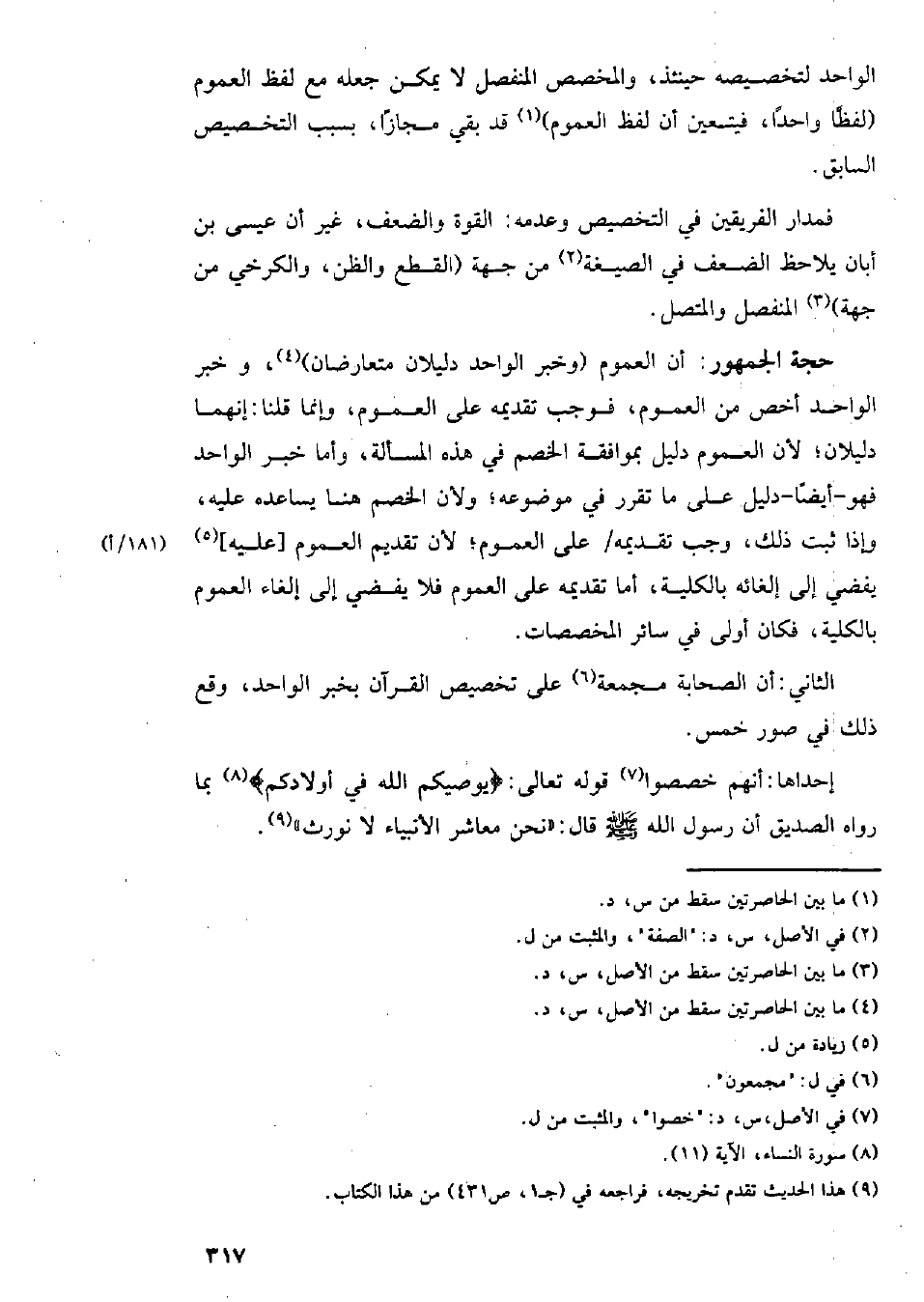 فمدار الفريقين في التخصيص وعدمه: القوة والضعف، غير أن عيسى بن أبان يلاحظ الضعف في الصيغة من جهة (القطع والظن، والكرخي من جهة) المنفصل والمتصل.