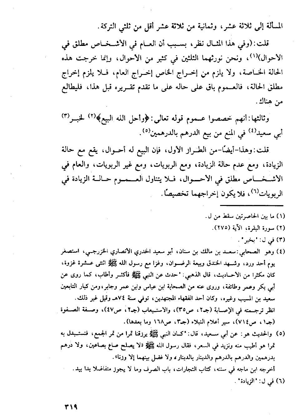 قلت: وهذا- أيضًا- من الطراز الأول، فإن البيع له أحوال، يقع مع حالة الزيادة، ومع عدم حالة الزيادة، ومع الربويات، ومع غير الربويات، والعام في الأشخاص مطلق في الأحوال، فلا يتناول العموم حالة الزيادة في الربويات، فلا يكون إخراجهما تخصيصًا.