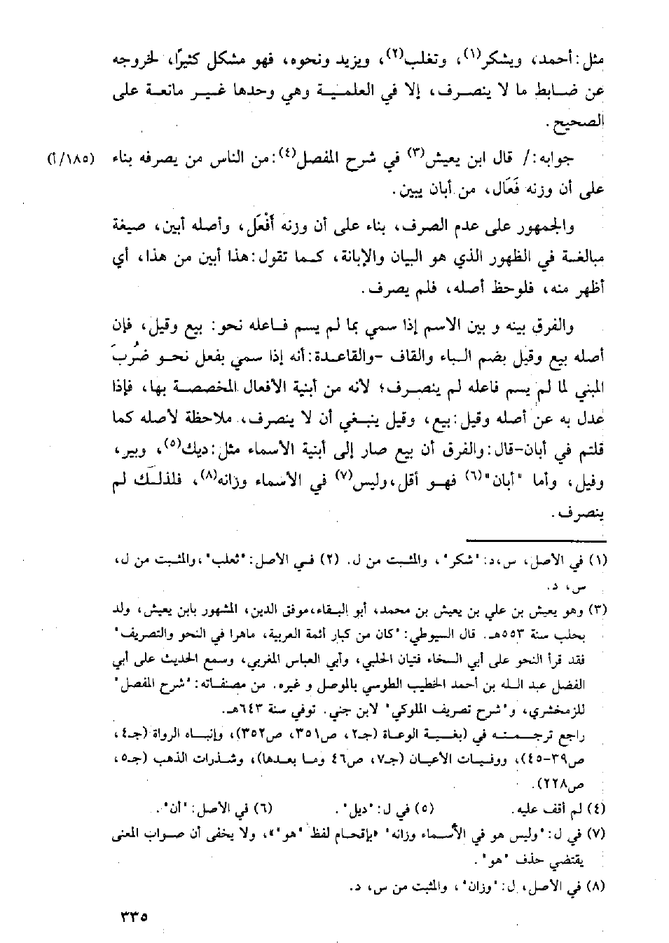 جوابه: قال ابن يعيش في شرح المفصل: من الناس من يصرفه بناء على أن وزنه فعال، من أبان يبين.