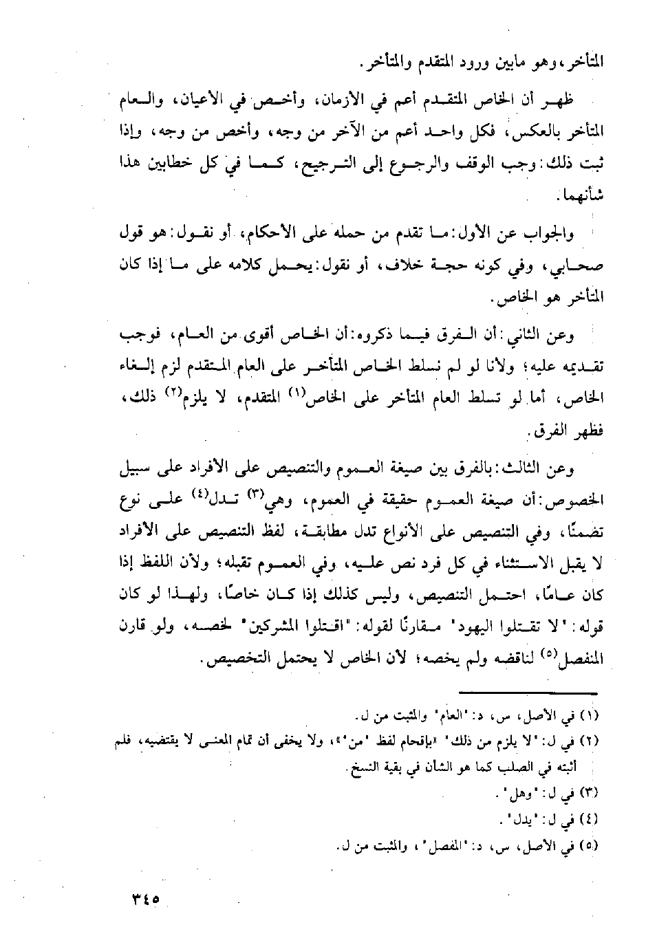 وعن الثاني: أن الفرق فيما ذكروه: أن الخاص أقوى من العام، فوجب تقديمه عليه؛ ولأنا لو لم نسلط الخاص المتأخر على العام المتقدم لزم إلغاء الخاص، أما لو تسلط العام المتأخر على الخاص المتقدم، لا يلزم ذلك، فظهر الفرق.