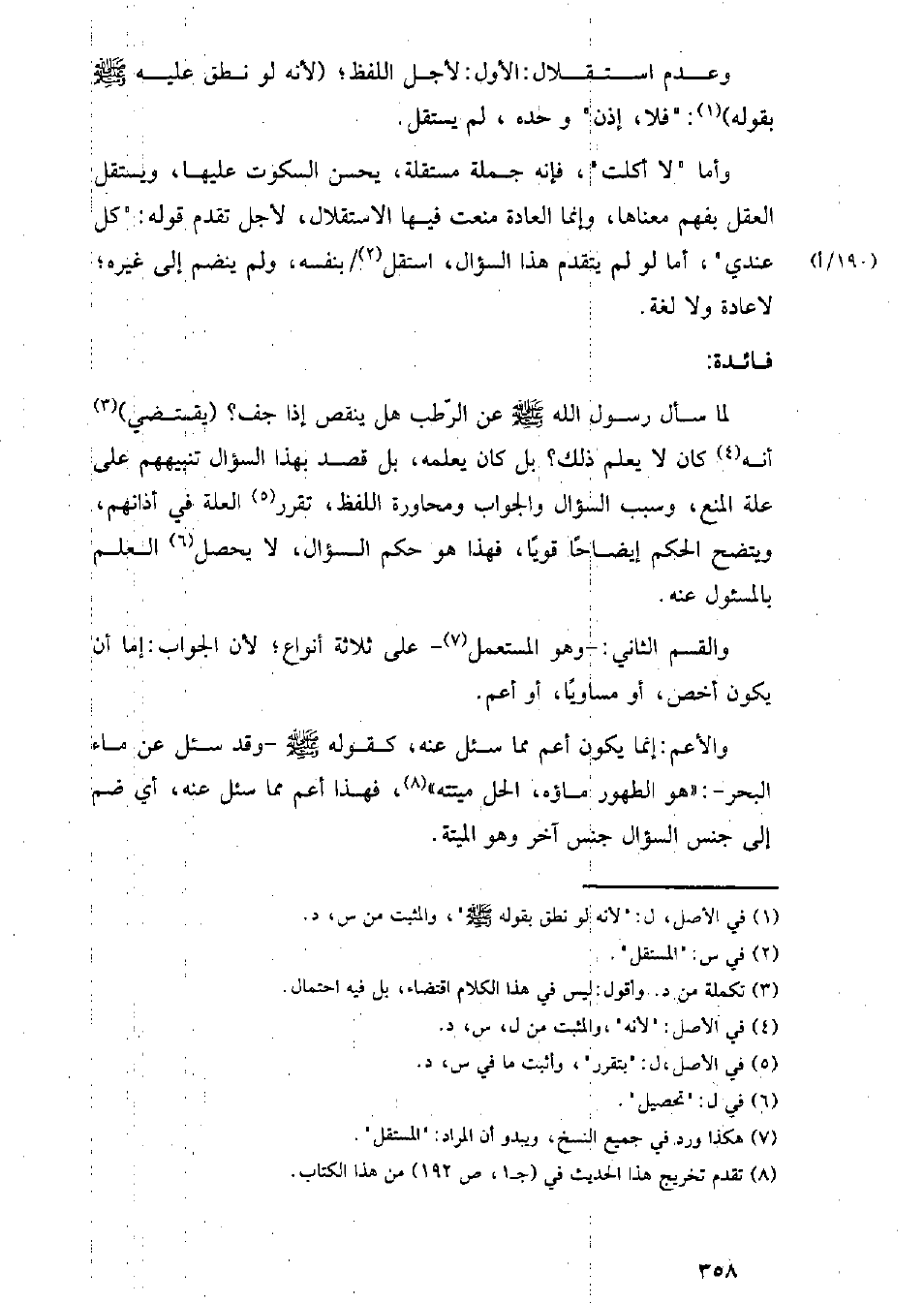 لما سأل رسول الله - صلى الله عليه وسلم - عن الرطب هل ينقص إذا جف؟ (يقتضي) أنه كان لا يعلم ذلك؟ بل كان يعلمه، بل قصد بهذا السؤال تنبيههم على علة المنع، وسبب السؤال والجواب ومحاورة اللفظ، تقرر العلة في أذانهم، ويتضح الحكم أيضًا قويًا، فهذا هو حكم السؤال، لا يحصل العلم بالمسئول عنه.