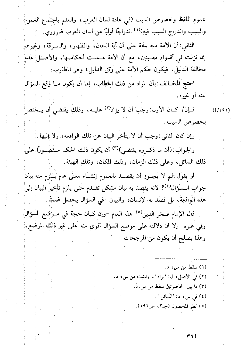 عموم اللفظ وخصوص السبب (في عادة لسان العرب، والعلم باجتماع العموم والسبب واندراج السبب فيه) اندراجًا أوليًا من لسان العرب ضروري.