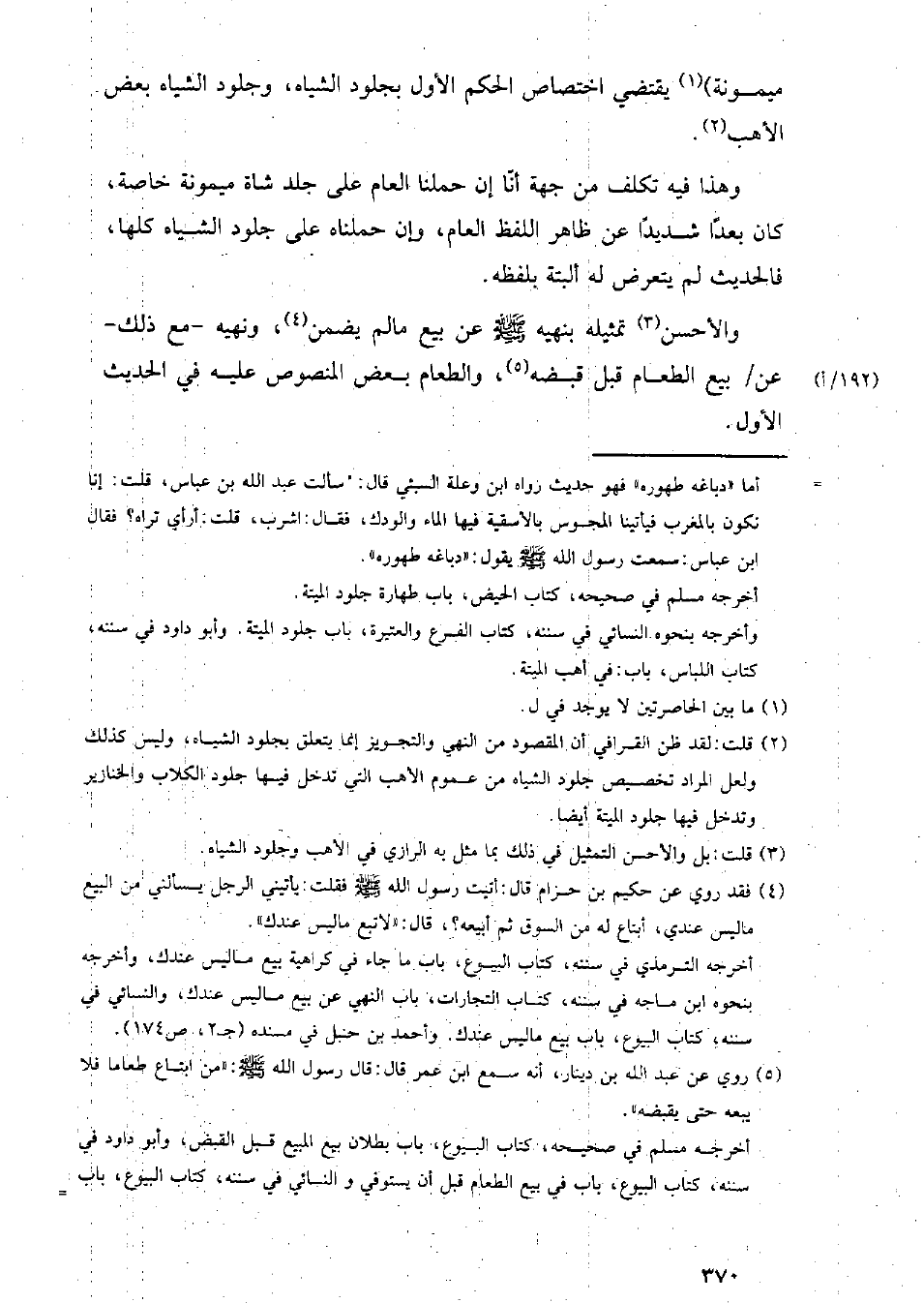 وهذا فيه تكلف من جهة أنا إن حملنا العام على جلد شاة ميمونة خاصة, كان بعدًا شديدًا عن ظاهر اللفظ العام, وإن حملناه على جلود الشياه كلها, فالحديث لم يتعرض له البتة بلفظه.