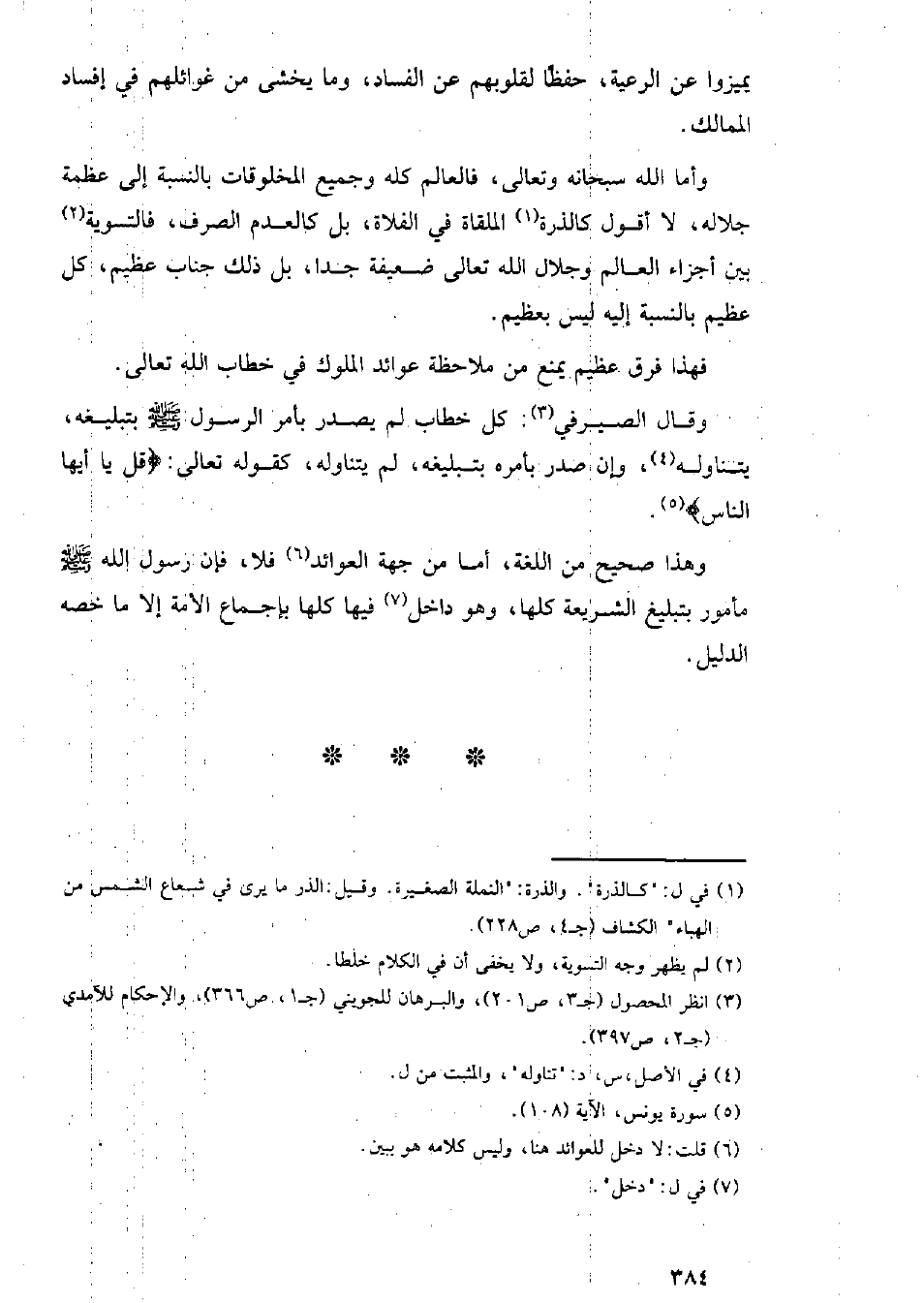 فهذا فرق عظيم يمنع من ملاحظة عوائد الملوك في خطاب الله تعالى.