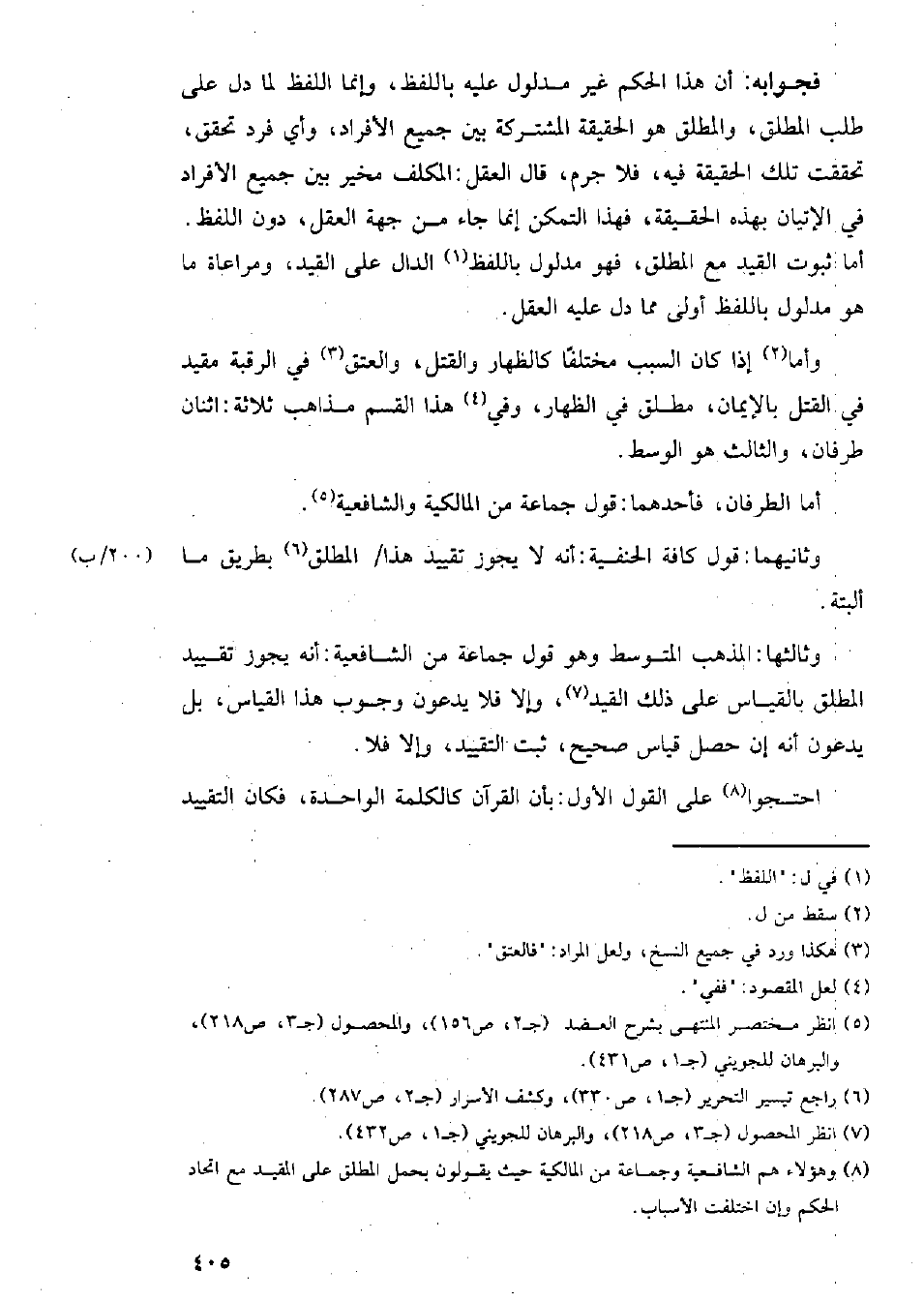 وثانيهما: قول كافية الحنفية: أنه لا يجوز تقييد هذا المطلق بطريق ما ألبتة.