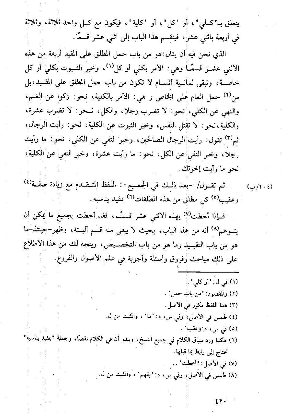 الذي نحن فيه أن يقال: هو من باب حمل المطلق على المقيد أربعة من هذه الاثنى عشر قسمًا وهي: الأمر بكلي أو كل، وخبر الثبوت بكلي أو كل خاصة، وتبقى ثمانية أقسام لا تكون من باب حمل المطلق على المقيد، بل من حمل العام على الخاص وهي: الأمر بالكلية، نحو: زكوا عن الغنم، والنهي عن الكلي، نحو: لا تضرب رجلا، والكل، نحو: لا تضرب عشرة، والكلية، نحو: لا تقتل النفس، وخبر الثبوت عن الكلية، نحو: رأيت الرجال، ثم تقول: رأيت الرجال الصالحين، وخبر النفي عن الكلي، نحو: ما رأيت رجلا، وخبر النفي عن الكل، نحو: ما رأيت عشرة، وخبر النفي عن الكلية، نحو ما رأيت إخوتك.