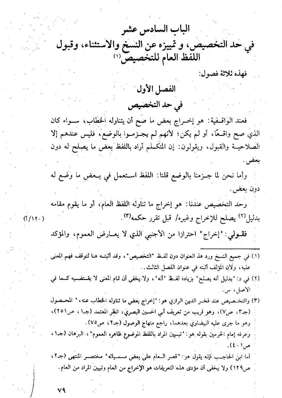 الباب السادس عشر في حد التخصيص، وتمييزه عن النسخ والاستثناء، وقبول اللفظ العام للتخصيص