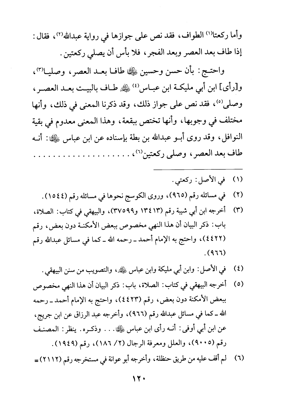(¬5) أخرجه البيهقي في كتاب: الصلاة، باب: ذكر البيان أن هذا النهي مخصوص ببعض الأمكنة دون بعض، رقم (4423)، واحتج به الإمام أحمد - رحمه الله - كما في مسائل عبد الله رقم (966)، وأخرجه عبد الرزاق عن ابن جريج، عن ابن أبي أوفى: أنه رأى ابن عباس - رضي الله عنهما - ... وذكره. ينظر: المصنف رقم (9005)، والعلل ومعرفة الرجال (2/ 186)، رقم (1949).