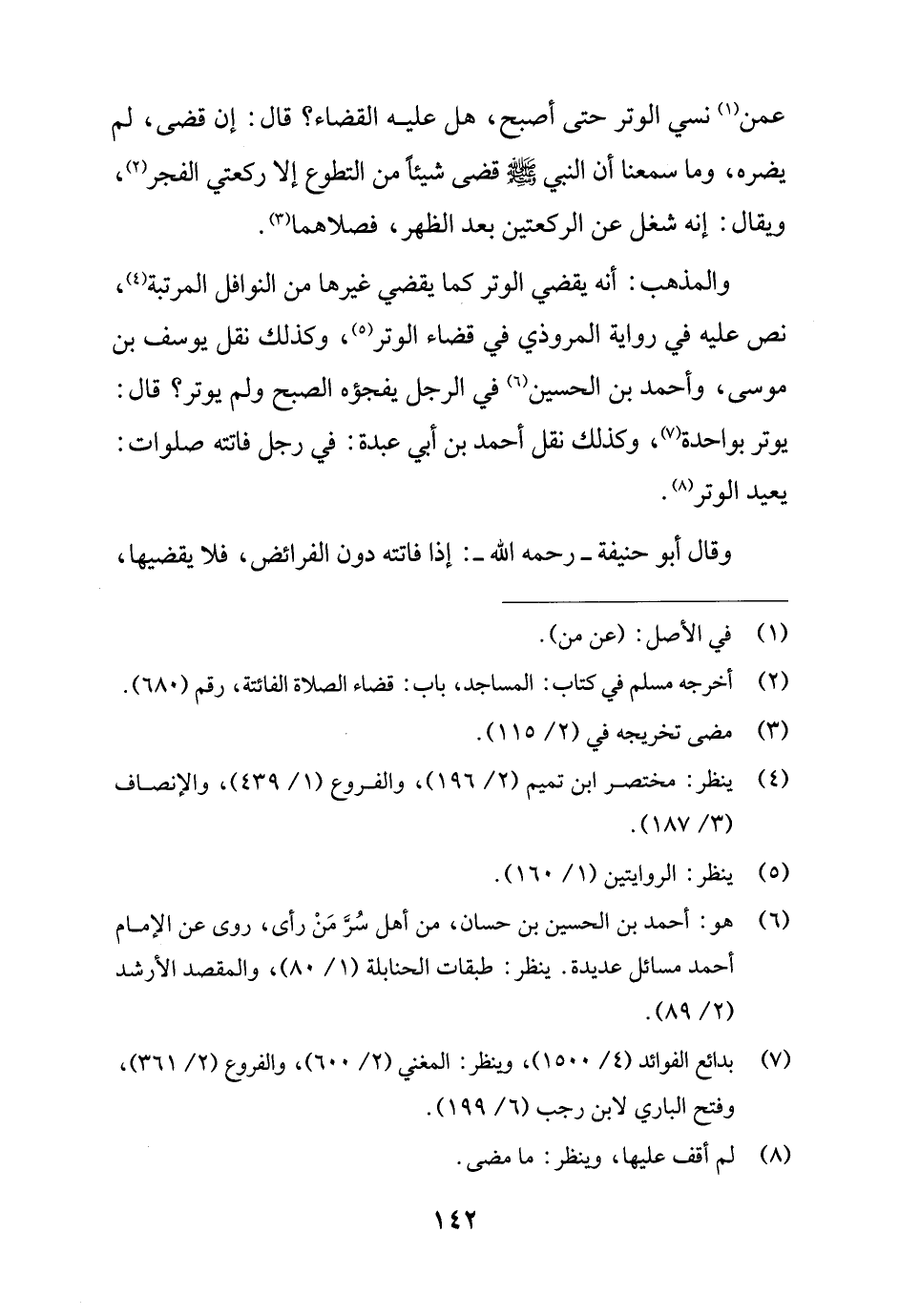 (¬7) بدائع الفوائد (4/ 1500)، وينظر: المغني (2/ 600)، والفروع (2/ 361)، وفتح الباري لابن رجب (6/ 199).