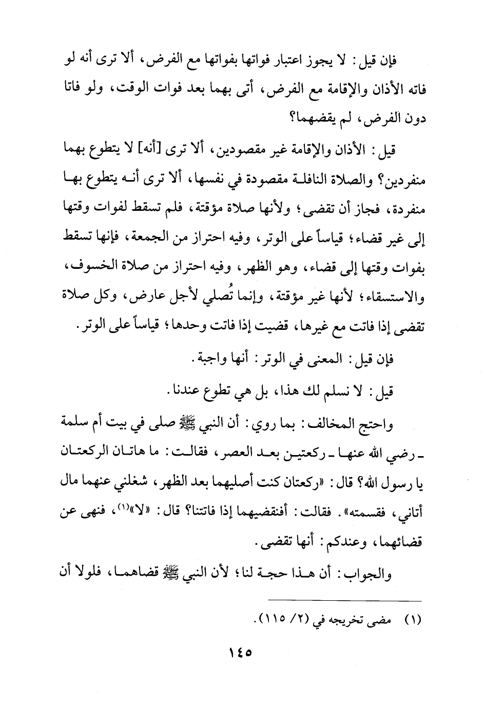 والجواب: أن هذا حجة لنا؛ لأن النبي - صلى الله عليه وسلم - قضاهما، فلولا أن