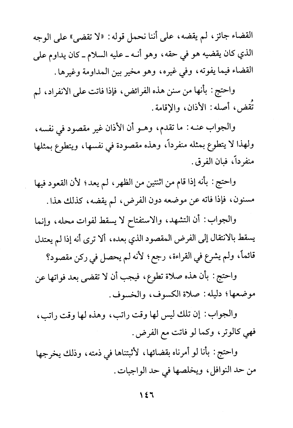 واحتج: بأنا لو أمرناه بقضائها، لأثبتناها في ذمته، وذلك يخرجها من حد النوافل، ويخلصها في حد الواجبات.