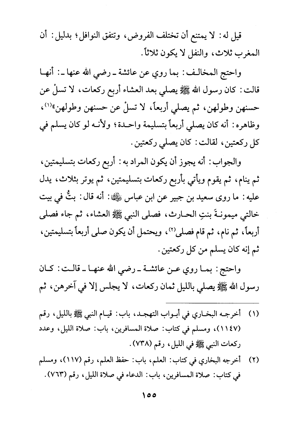 (¬1) أخرجه البخاري في أبواب التهجد، باب: قيام النبي - صلى الله عليه وسلم - بالليل، رقم (1147)، ومسلم في كتاب: صلاة المسافرين، باب: صلاة الليل، وعدد ركعات النبي - صلى الله عليه وسلم - في الليل، رقم (738).