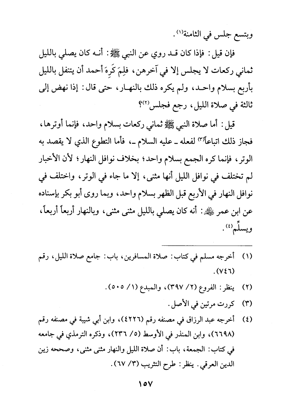 (¬4) أخرجه عبد الرزاق في مصنفه رقم (4226)، وابن أبي شيبة في مصنفه رقم (6698)، وابن المنذر في الأوسط (5/ 236)، وذكره الترمذي في جامعه في كتاب: الجمعة، باب: أن صلاة الليل والنهار مثنى مثنى، وصححه زين الدين العرقي. ينظر: طرح التثريب (3/ 67).