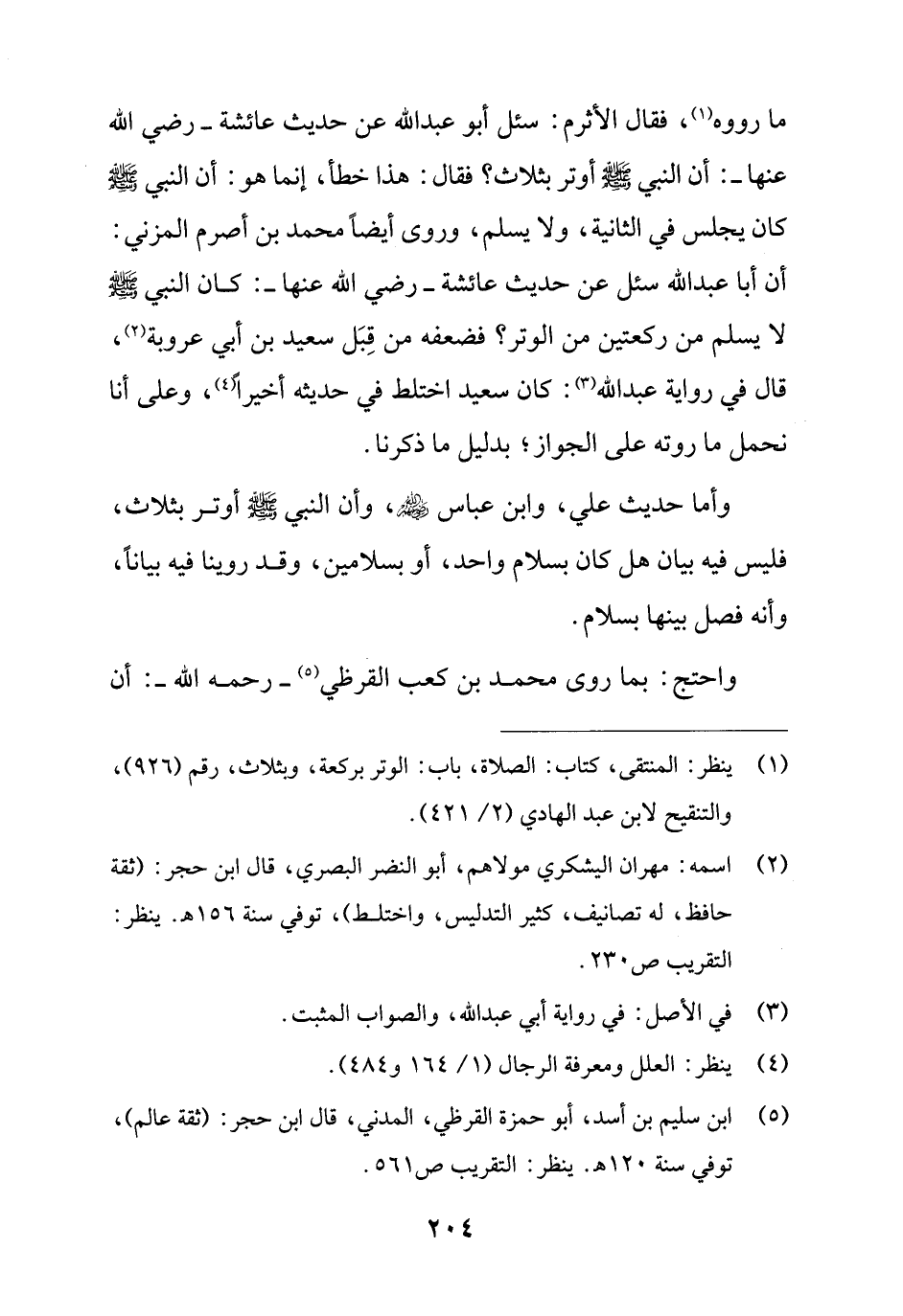 (¬1) ينظر: المنتقى، كتاب: الصلاة، باب: الوتر بركعة، وبثلاث، رقم (926)، والتنقيح لابن عبد الهادي (2/ 421).