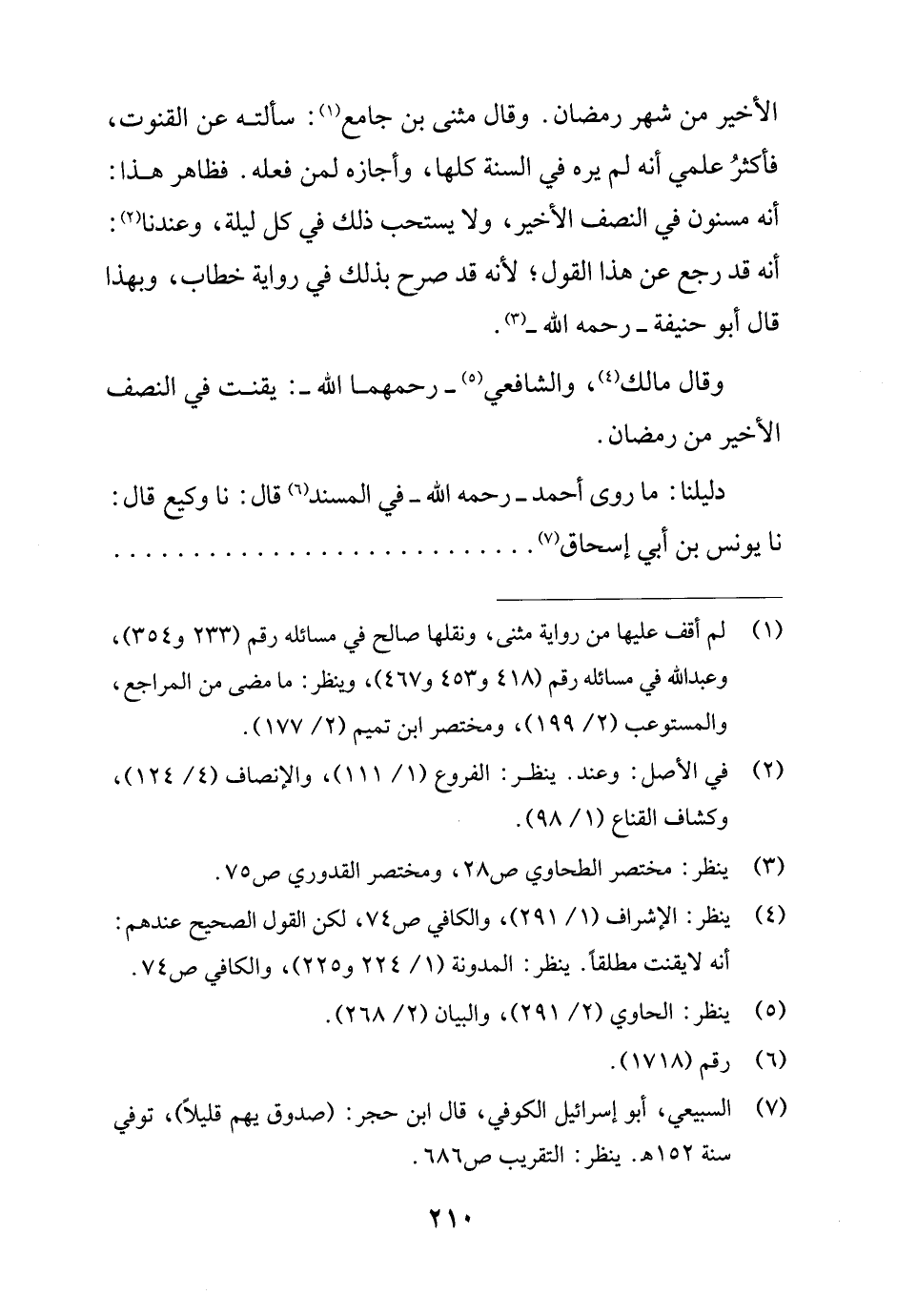 (¬4) ينظر: الإشراف (1/ 291)، والكافي ص 74، لكن القول الصحيح عندهم: أنه لا يقنت مطلقًا. ينظر: المدونة (1/ 224 و 225)، والكافي ص 74.