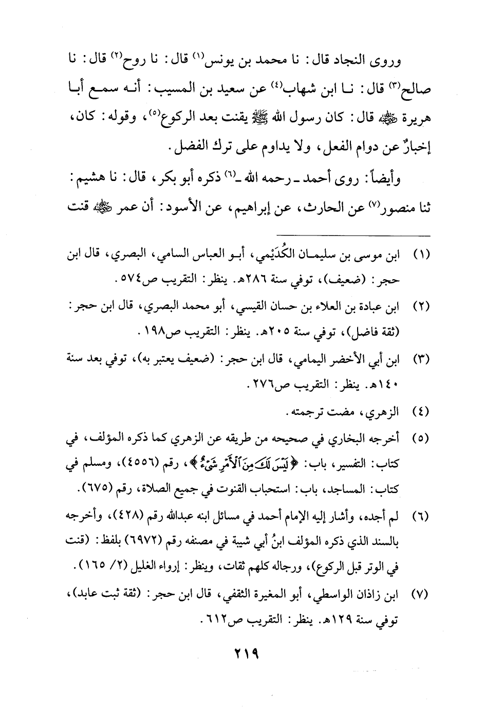 (¬5) أخرجه البخاري في صحيحه من طريقه عن الزهري كما ذكره المؤلف، في كتاب: التفسير، باب: {لَيْسَ لَكَ مِنَ الْأَمْرِ شَيْءٌ}، رقم (4556)، ومسلم في كتاب: المساجد، باب: استحباب القنوت في جميع الصلاة، رقم (675).