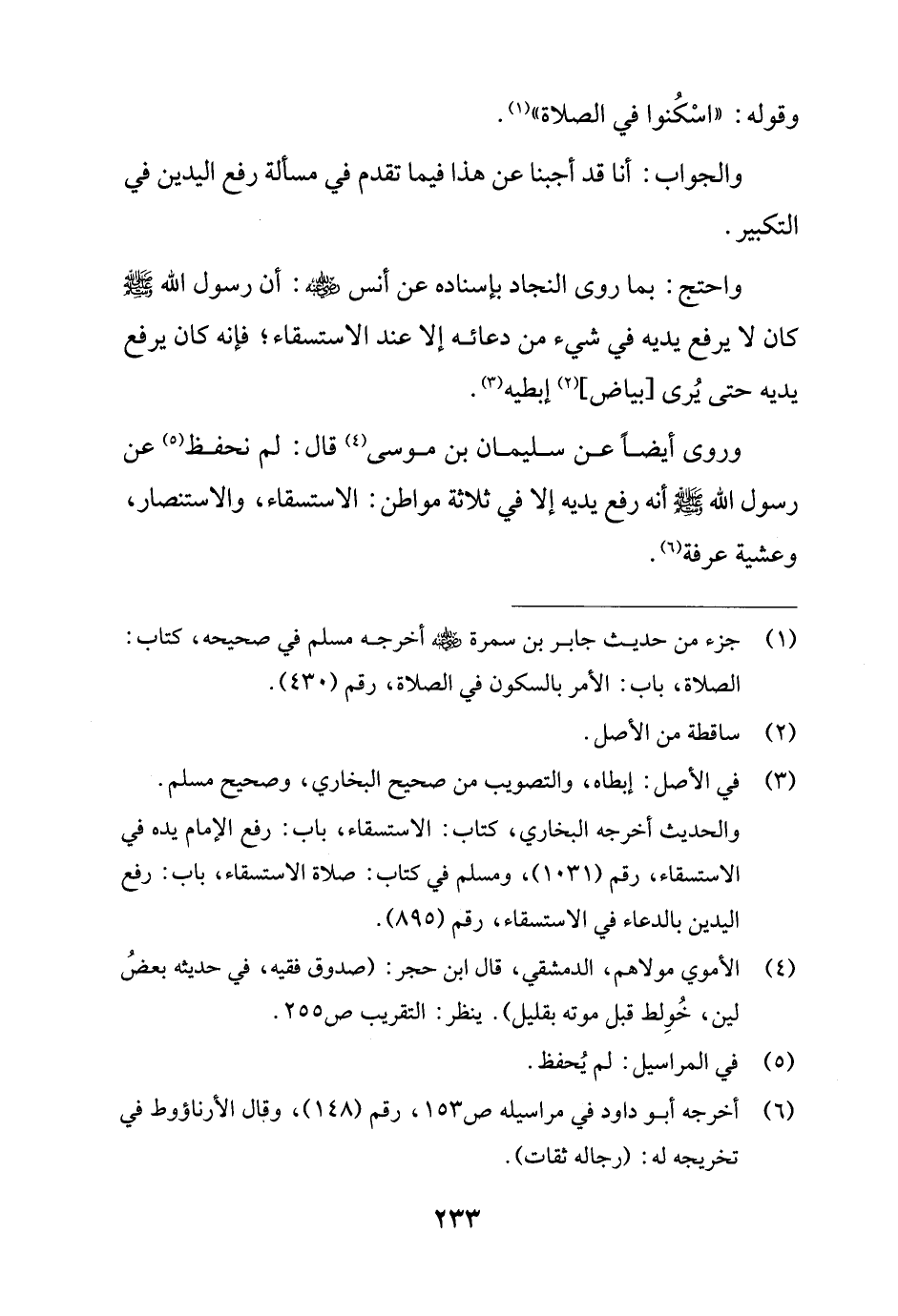 والجواب: أنا قد أجبنا عن هذا فيما تقدم في مسألة رفع اليدين في التكبير.