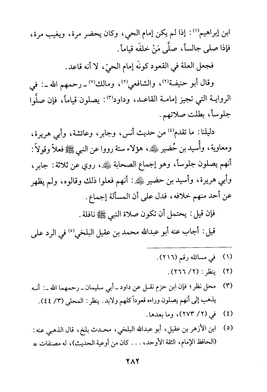 (¬3) محل نظر؛ فإن ابن حزم نقل عن داود - أبي سليمان - رحمهما الله -: أنه يذهب إلى أنهم يصلون وراءه قعودًا كلهم ولا بد. ينظر: المحلى (3/ 44).