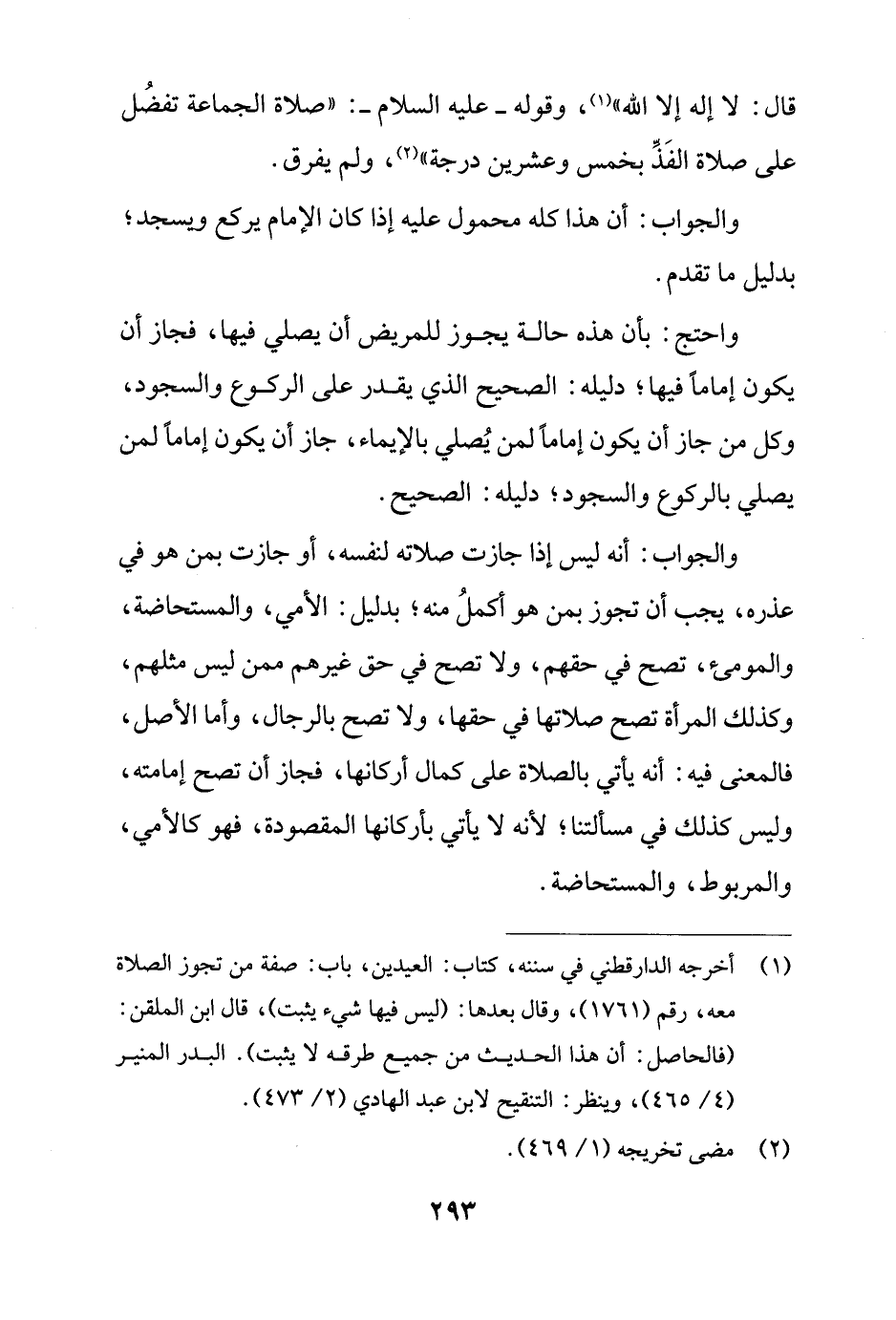 (¬1) أخرجه الدارقطني في سننه، كتاب: العيدين، باب: صفة من تجوز الصلاة معه، رقم (1761)، وقال بعدها: (ليس فيها شيء يثبت)، قال ابن الملقن: (فالحاصل: أن هذا الحديث من جميع طرقه لا يثبت). البدر المنير (4/ 465)، وينظر: التنقيح لابن عبد الهادي (2/ 473).