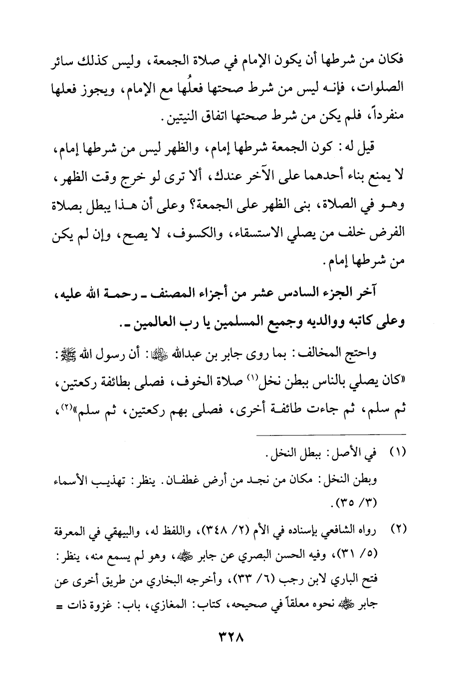 آخر الجزء السادس عشر من أجزاء المصنف - رحمة الله عليه، وعلى كاتبه ووالديه وجميع المسلمين يا رب العالمين -.