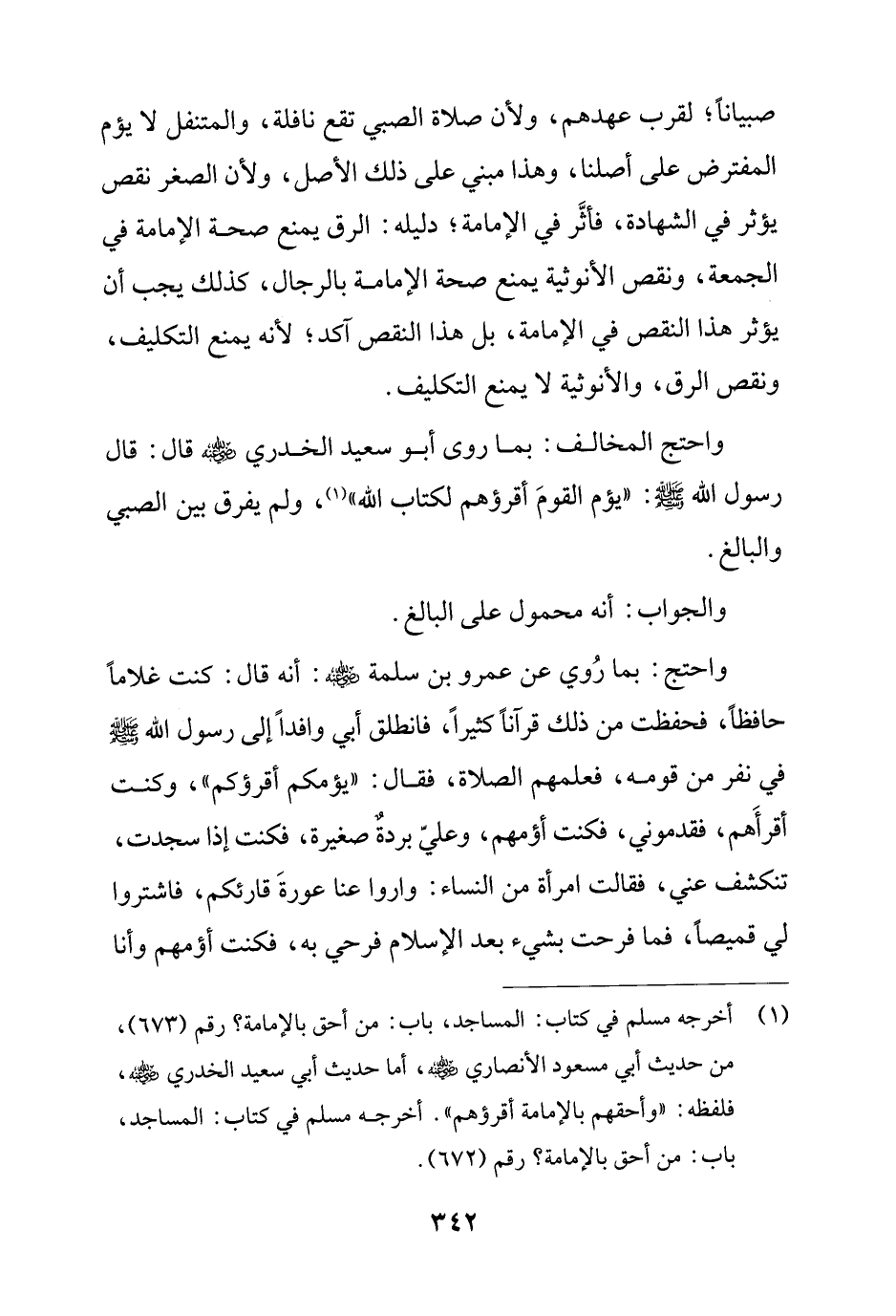 (¬1) أخرجه مسلم في كتاب: المساجد، باب: من أحق بالإمامة؟ رقم (673)، من حديث أبي مسعود الأنصاري - رضي الله عنه -، أما حديث أبي سعيد الخدري - رضي الله عنه -، فلفظه: "وأحقهم بالإمامة أقرؤهم". أخرجه مسلم في كتاب: المساجد، باب: من أحق بالإمامة؟ رقم (672).