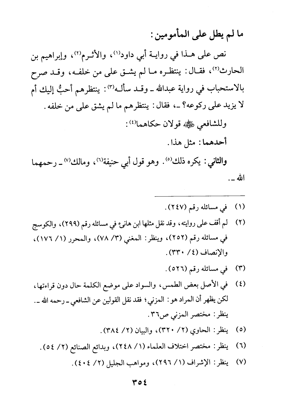 (¬7) ينظر: الإشراف (1/ 296)، ومواهب الجليل (2/ 404).
