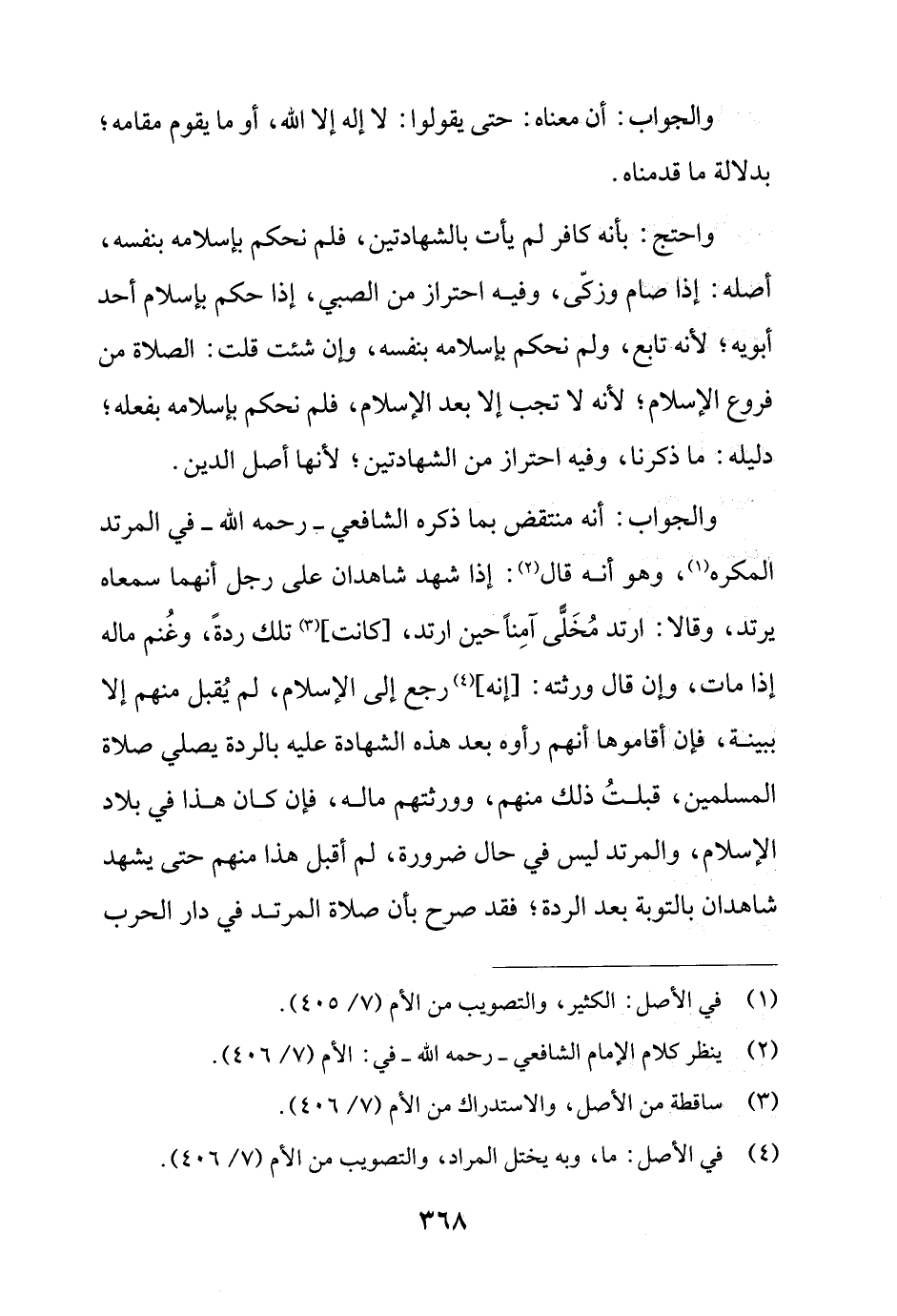 (¬2) ينظر كلام الإمام الشافعي - رحمه الله - في: الأم (7/ 406).