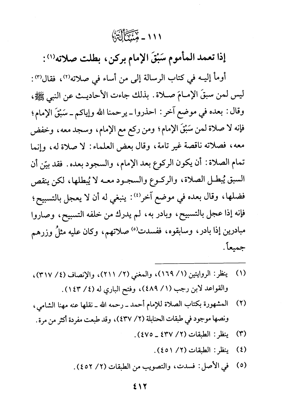 (¬2) المشهورة بكتاب الصلاة للإمام أحمد - رحمه الله - نقلها عنه مهنا الشامي، ونصها موجود في طبقات الحنابلة (2/ 437)، وقد طبعت مفردة أكثر من مرة.