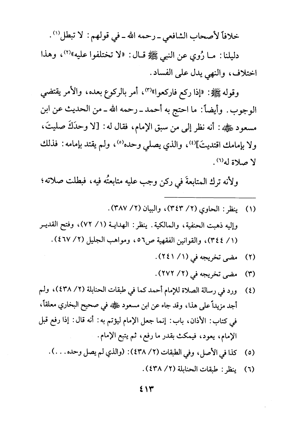 (¬4) ورد في رسالة الصلاة للإمام أحمد كما في طبقات الحنابلة (2/ 438)، ولم أجد مزيدًا على هذا، وقد جاء عن ابن مسعود - رضي الله عنه - في صحيح البخاري معلقًا، في كتاب: الأذان، باب: إنما جعل الإمام ليؤتم به: أنه قال: إذا رفع قبل الإمام، يعود، فيمكث بقدر ما رفع، ثم يتبع الإمام.