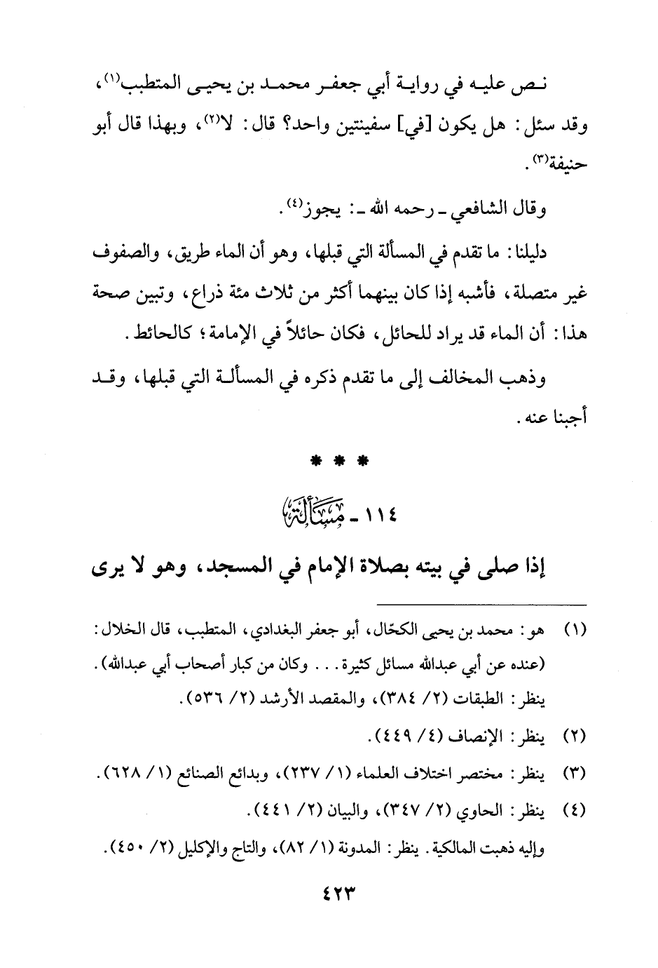 نص عليه في رواية أبي جعفر محمد بن يحيى المتطبب (¬1)، وقد سئل: هل يكون [في] سفينتين واحد؟ قال: لا (¬2)، وبهذا قال أبو حنيفة (¬3).