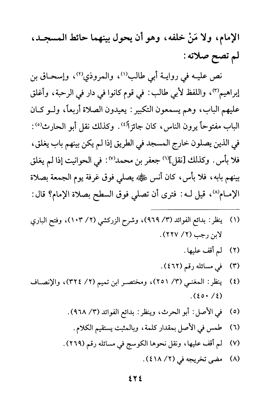 (¬4) ينظر: المغني (3/ 251)، ومختصر ابن تميم (2/ 324)، والإنصاف (4/ 450).