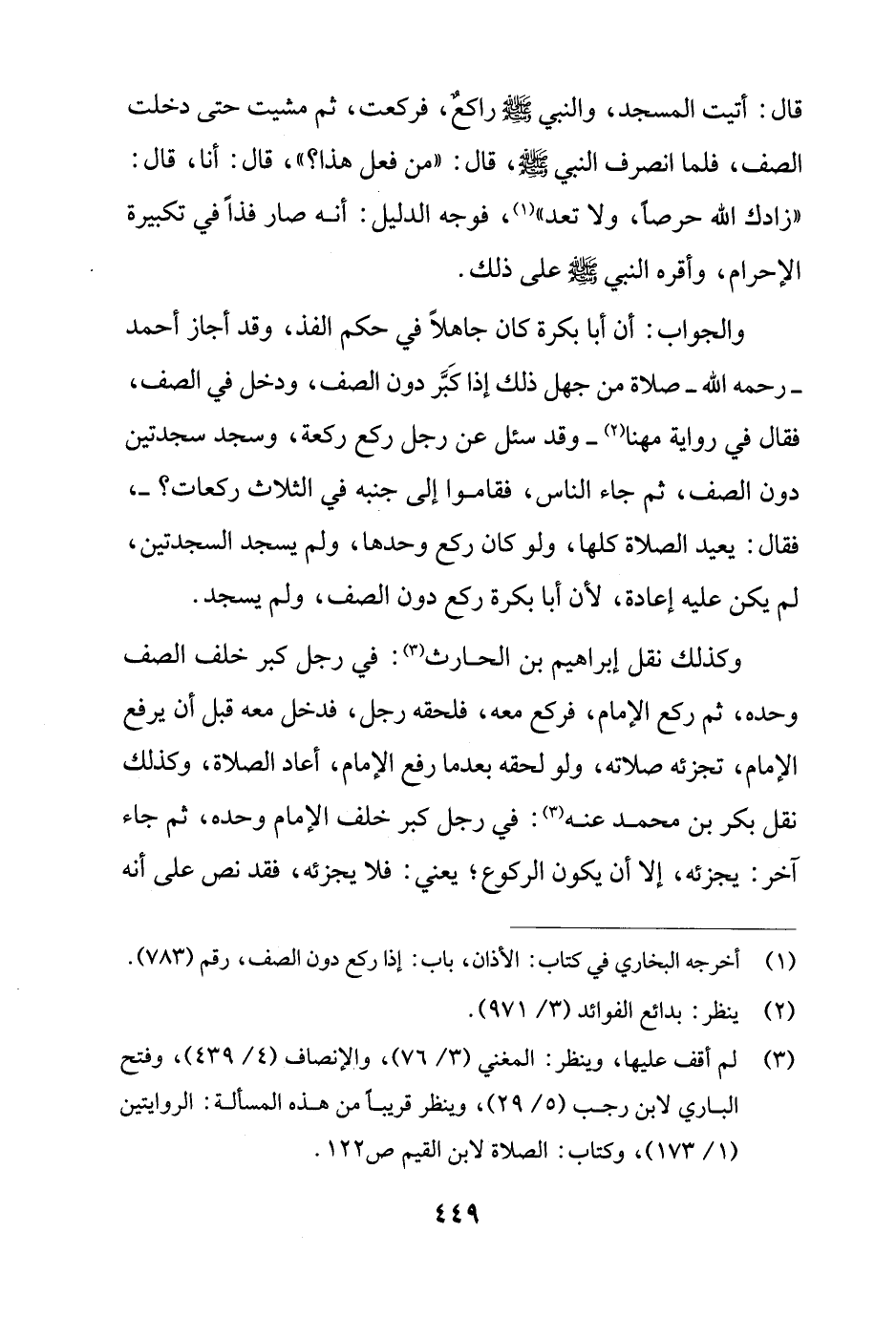 (¬3) لم أقف عليها، وينظر: المغني (3/ 76)، والإنصاف (4/ 439)، وفتح الباري لابن رجب (5/ 29)، وينظر قريبًا من هذه المسألة: الروايتين (1/ 173)، وكتاب: الصلاة لابن القيم ص 122.