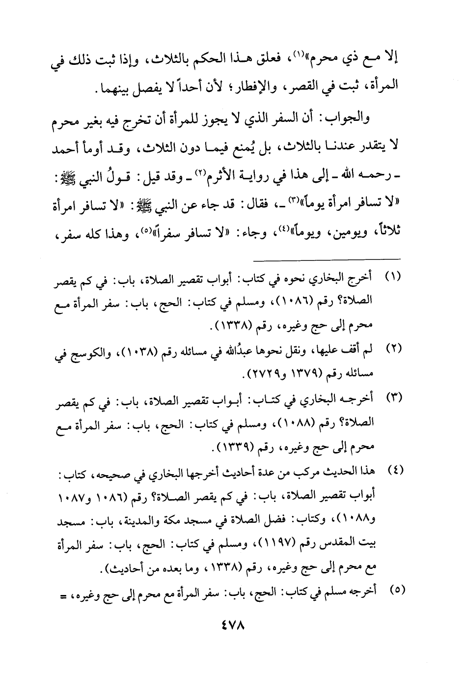 (¬5) أخرجه مسلم في كتاب: الحج، باب: سفر المرأة مع محرم إلى حج وغيره، =