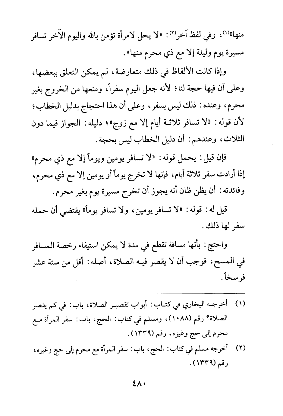 (¬1) أخرجه البخاري في كتاب: أبواب تقصير الصلاة، باب: في كم يقصر الصلاة؟ رقم (1088)، ومسلم في كتاب: الحج، باب: سفر المرأة مع محرم إلى حج وغيره، رقم (1339).