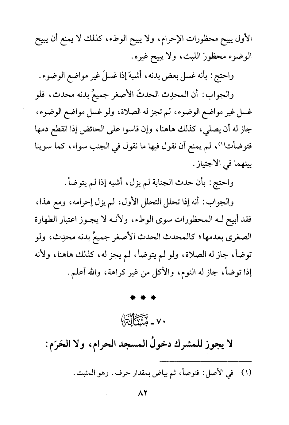70 - مَسْألَة: لا يجوز للمشرك دخولُ المسجد الحرام، ولا الحَرَم: