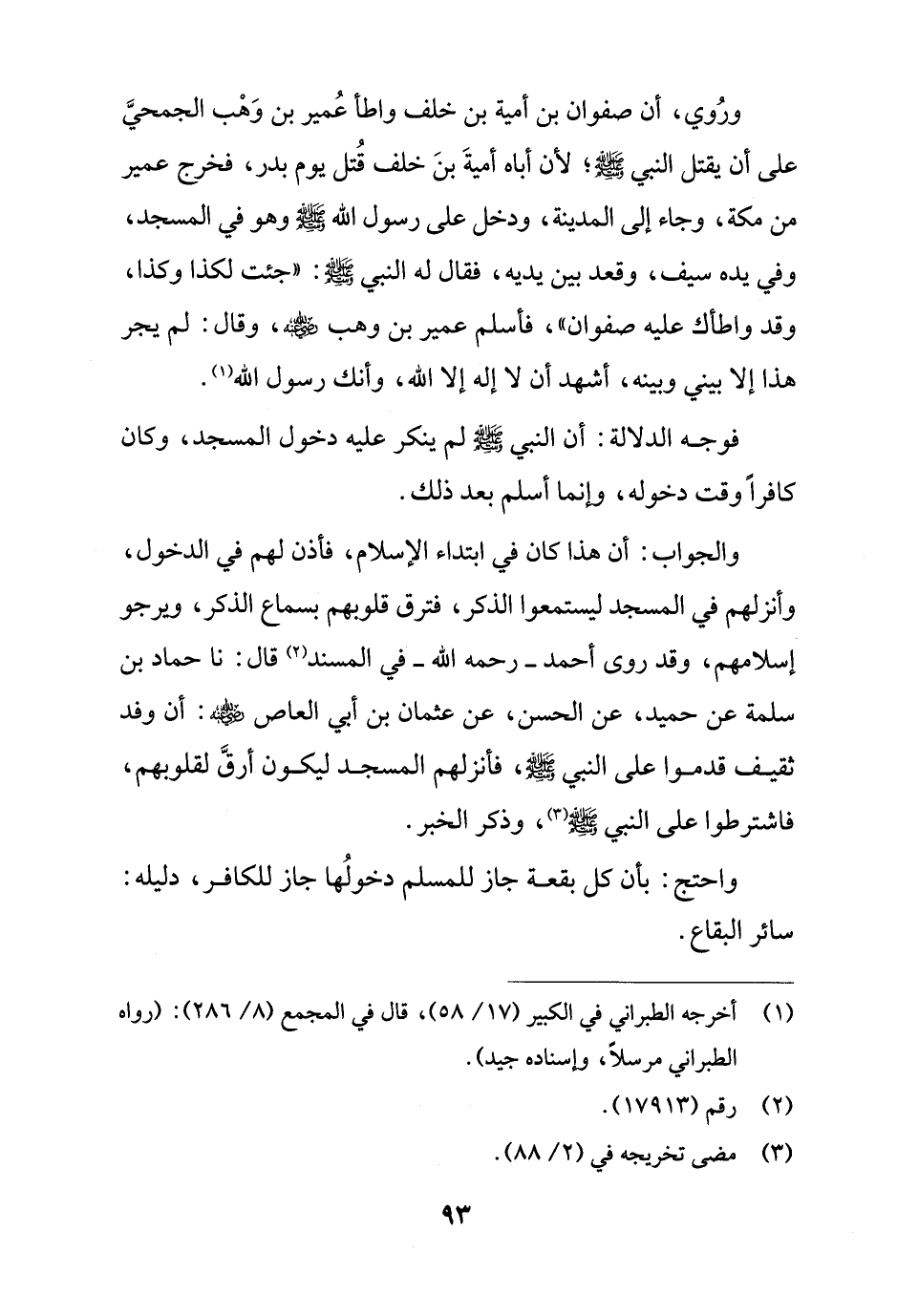 فوجه الدلالة: أن النبي - صلى الله عليه وسلم - لم ينكر عليه دخول المسجد، وكان كافرًا وقت دخوله، وإنما أسلم بعد ذلك.