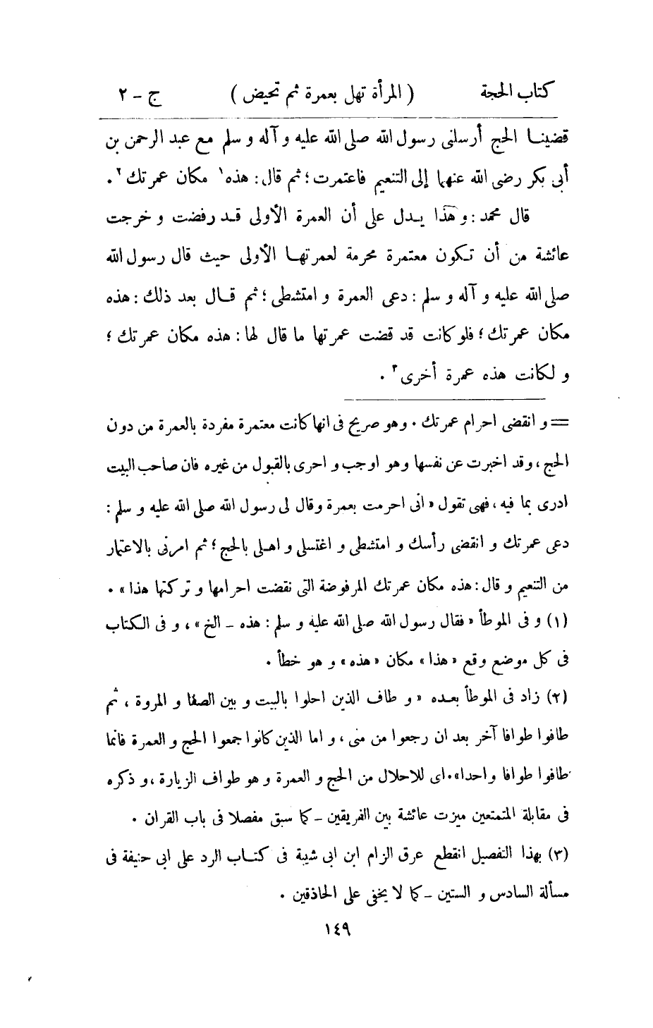 قَالَ مُحَمَّد وَهَذَا يدل على ان الْعمرَة الأولى قد رفضت وَخرجت عَائِشَة من ان تكون معتمرة مُحرمَة لعمرتها الأولى حَيْثُ قَالَ رَسُول الله صلى الله عَلَيْهِ وَسلم دعِي الْعمرَة وامتشطي ثمَّ قَالَ بعد ذَلِك هَذِه مَكَان عمرتك فَلَو كَانَت قد قَضَت عمرتها مَا قَالَ لَهَا هَذِه مَكَان عمرتك ولكانت هَذِه عمْرَة أُخْرَى