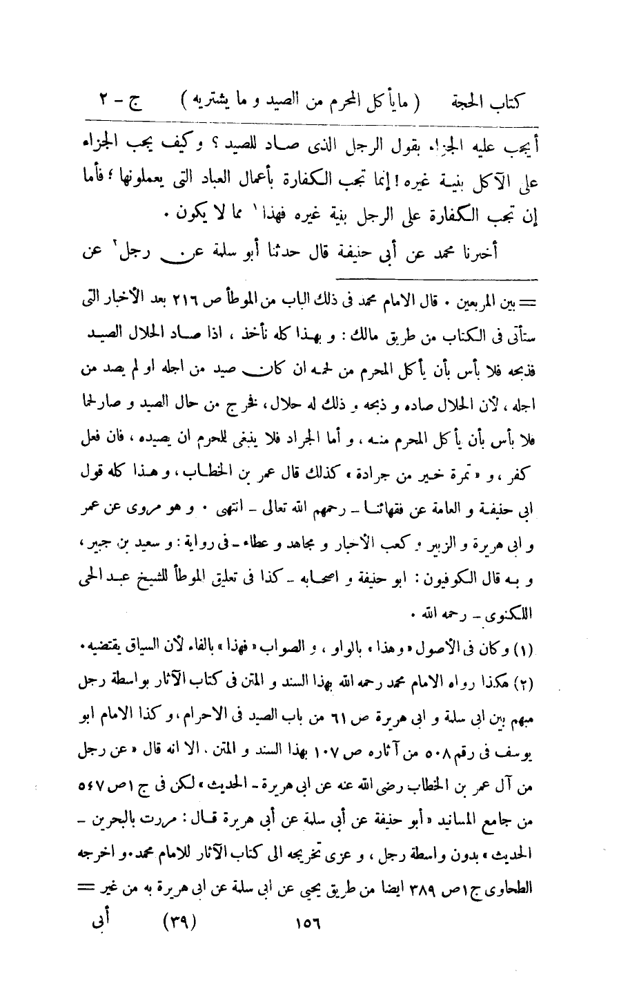 اُخْبُرْنَا مُحَمَّد عَن أبي حنيفَة قَالَ حَدثنَا أَبُو سَلمَة عَن رجل عَن
