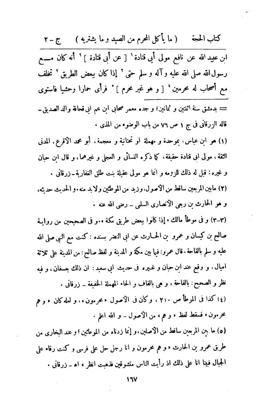 ابْن عبيد الله عَن نَافِع مولى أبي قَتَادَة عَن أبي قَتَادَة انه كَانَ مَعَ رَسُول الله صلى الله عَلَيْهِ وَسلم حَتَّى إِذا كَانَ بِبَعْض الطَّرِيق تخلف مَعَ أَصْحَاب لَهُ محرمين وَهُوَ غير محرم فَرَأى حمارا وحشيا فَاسْتَوَى