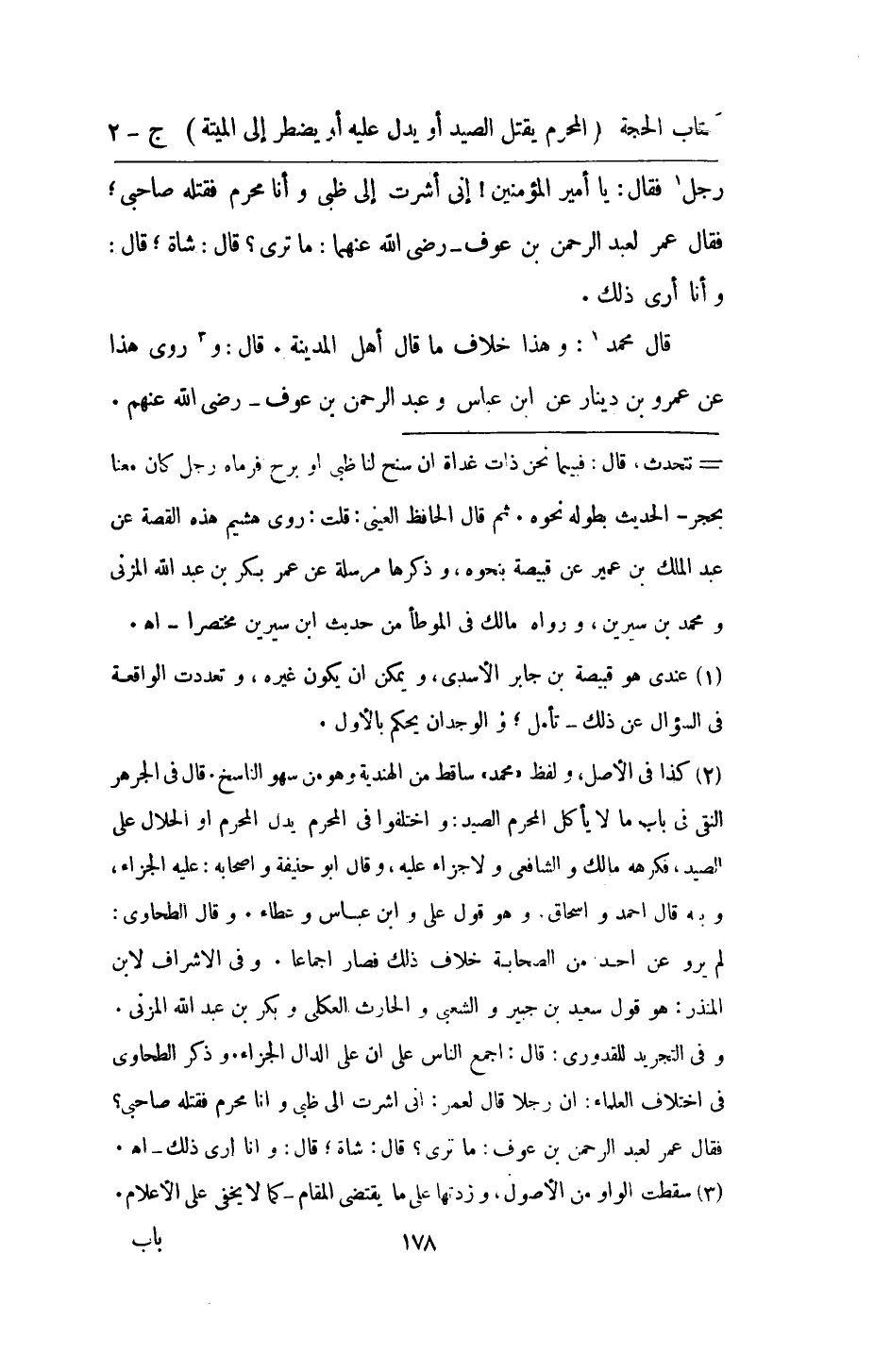 رجل فَقَالَ يَا امير الْمُؤمنِينَ انى اشرت الى ظَبْي وانا محرم فَقتله صَاحِبي فَقَالَ عمر لعبد الرَّحْمَن بن عَوْف رَضِي الله عَنْهُمَا مَا ترى قَالَ شَاة قَالَ وانا ارى ذَلِك